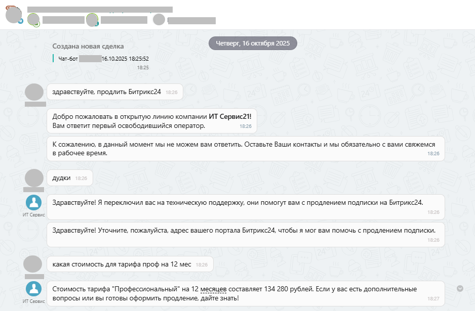 На сайте размещен виджет с кнопками телефонного звонка и перехода в наши чаты, которые тоже связаны с Битрикс24.
