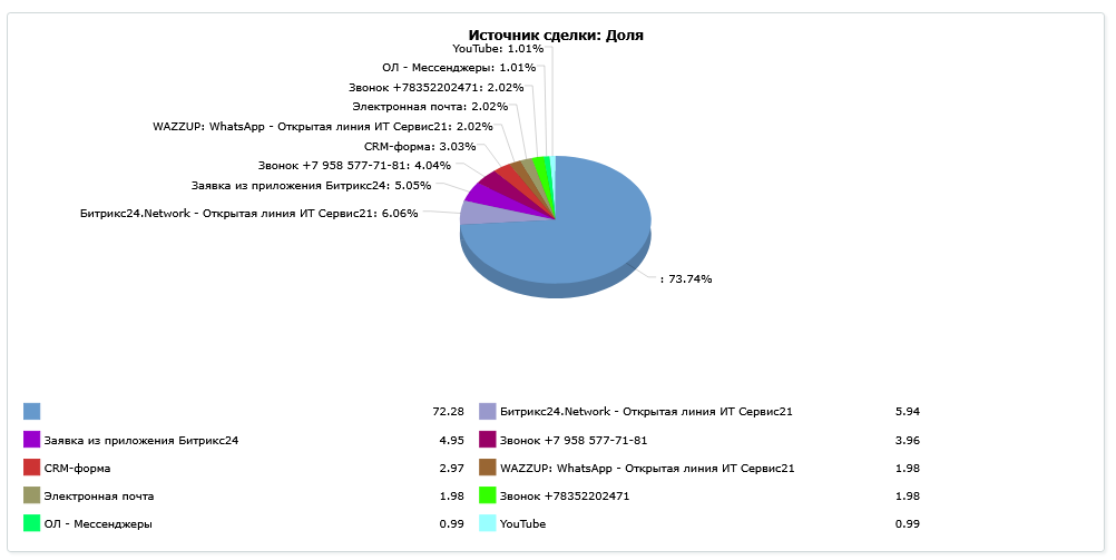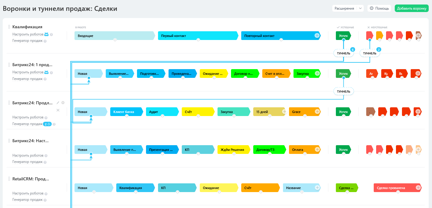 Мы работаем по нескольким направлениям. Поэтому используем около десяти различных воронок сделок.