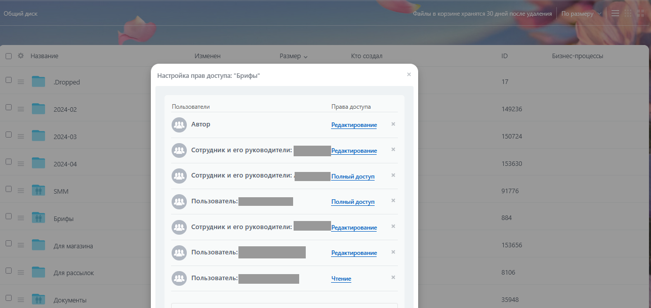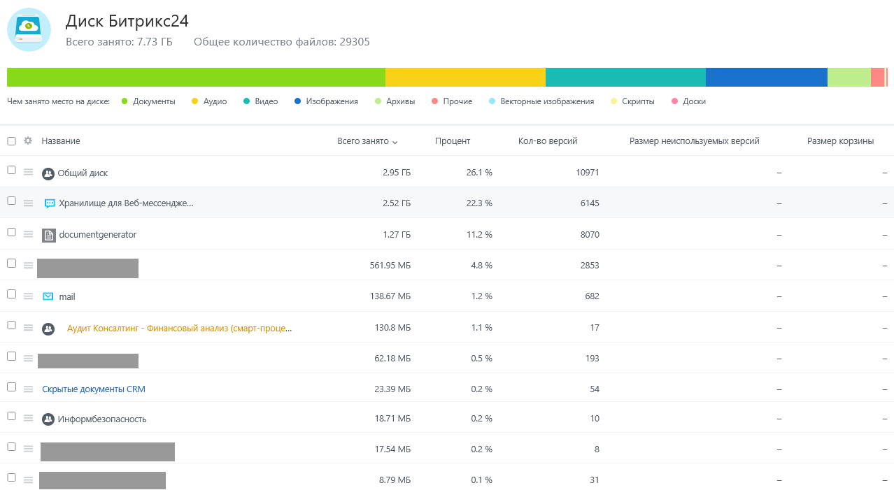 Для совместной работы с документами мы пользуемся "Общим диском" Битрикс24. Естественно, у нас настроено разграничение прав доступа к каталогам и файлам.