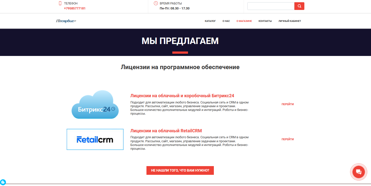 В Битрикс24 у нас настроен и Интернет-Магазин, но он больше используется в демонстрационных целях, хотя полностью функционален.