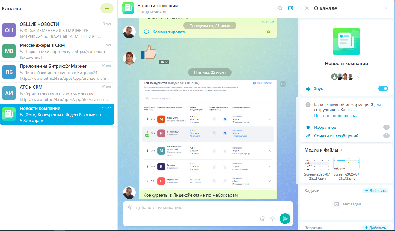 Кроме того в чатах Битрикс24 можно делать групповые звонки и видеозвонки, вести информационные каналы.