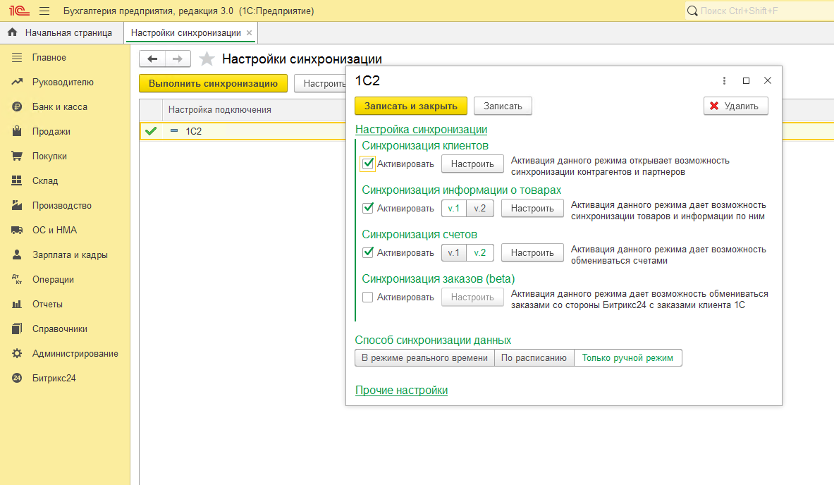 Благодаря интеграции Битрикс24 и 1с, данные двух систем синхронизируются.