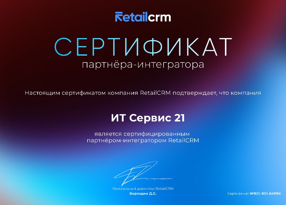 Наши компетенции подтверждены сертификатами и успешными проектами внедрения RetailCRM